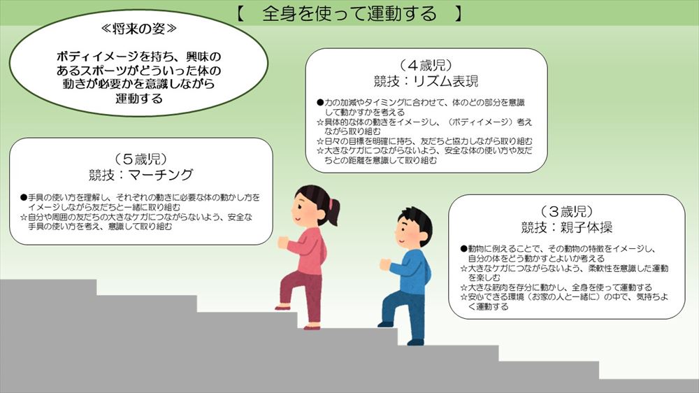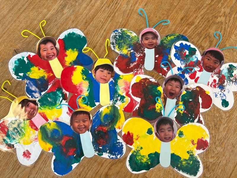 もも クラスページ 2025.06.052024.09.28 もも 年少組:『世界の蝶について知ろう』デカルコマニーに挑戦~IB 年少組は、今年度4月よりツマグロヒョウモンの飼育に取り組んでいます。ツマグロヒョウモンと一緒に生活する中で、様々な体験を通じ1学期をかけて『How the world works ~世界はどのような仕組みになっているのか』を探求していきます。今回の制作もその一つ。蝶の羽の模様に着目し、色々な大きさや形があることを知りました。そして、どの蝶にも共有しているのが『左右対称』であること。このようなこども達の気付きから今回の制作へとつながりました。 ねらいは以下の通りです。自分の作ってみたい蝶をイメージして作るデカルコマニーを通じて、絵の具の特性を知る。(制作の様子)・毎日誰かが飼育ケースを覗き、毎日誰かが食草(パンジー)の水やりをしています。蝶に羽化するのを心待ちにしながら、大型絵本や図鑑でみた色鮮やかな蝶々を思い描き、丁寧に羽に絵の具をのせていました。ぬった後、折り畳み、しばらくして広げると…そこには、世界にひとつの蝶々が!こどもたちが歓声を上げながら、友だちに見せていました。 今日は、大好きな蝶々たちのように、広い体育館いっぱい動いて運動会を楽しみます。どうぞ、こどもたちの作った蝶々にもご注目ください。 かけっこ ≪撮影ポイント:1F年少組園児席(ゴールする瞬間がご覧いただけます。)≫ 入園・進級から早いもので2ヶ月が経ちました。新生活がスタートした頃は、一人でじっくり遊んでいたこどもたちですが、クラスのみんなと様々な経験を通じて、大好きな先生や心を寄せる友だちと活動そのものを“一緒に楽しむ”姿にたくさん出会うようになってきたところです。 特にこども達の笑顔が光る場面が運動遊び。友だちと一緒に『走る』『跳ぶ』『曲げる』等々、一つ一つの運動動作の中に、自分の体が自分のイメージした通りに動いていることを実感し心から楽しんでいます。そんなこども達が、運動担当の雑賀先生と『運動の日』で取り組んできた内容がかけっこです。 内容は以下の通りです。・応援してくれる人に「ここにいるよ!」の気持ちが届くような返事・走り出すときの準備(利き足や腕の準備)・どこを目指して走るとよいか(目線) 取り組みを重ねるごとに、こどもたちが教師の『よーい』の掛け声に“走り出し”を意識し、ゴールまでスピードにのって走る楽しさを存分に感じています。こどもたちのいきいきとして表情にご注目ください。 親子体操みんなでワクワク!パワフルパワー! ≪撮影ポイント:2F年少組保護者観覧席(お家の方と一緒に広い空間で存分に運動します)≫ どの学年よりも、運動遊びが大好きな年少組さん。『かけっこ』の取り組みの時と同様に、雑賀先生と取り組むリズム体操も楽しみの一つです。この体操は、満3歳のころから親しんでおり、こどもたちの取ってはおなじみの内容になっています。今回の取り組みのポイントは以下の通りです。・体の大きな筋肉を使う・体の動きをイメージし、コントロールする面白さを感じる 今回は、この体操に保護者の皆様にもご協力いただき、タオルを使ったふれあい遊びも取り入れました。 生涯を通じて運動する楽しさ感じる出発点とも言える今回の運動会。どうぞ、保護者の皆様も広い体育館で存分に体を動かしながら、お子様と楽しいひと時をお過ごしください。(ご家庭で、動画を観ながら取り組んでいただき、ありがとうございました。心より感謝申し上げます。) 取り組みの様子をご覧ください かけっこ 親子体操みんなでワクワク! パワフルパワー! 制作